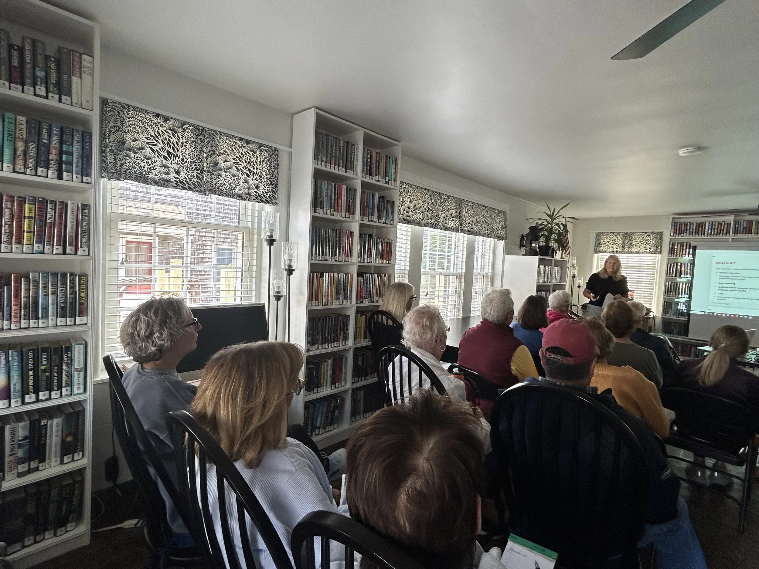 Sarah walked us through what AI is (and what it isn’t), how it’s being used in everyday life, and some of the benefits and challenges we can expect as the technology continues to grow. Attendees asked thoughtful questions, shared their own experiences, and left feeling more informed and empowered about this rapidly changing topic.